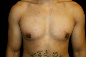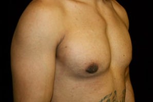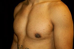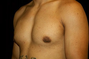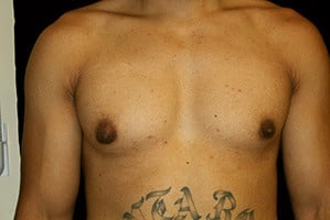 Santa Rosa, California This is a 22 year old male who presents to the Novato office for treatment of adolescent gynecomastia. His primary complaint is puffy nipples. He has had previous male breast reduction surgery approximately three years ago and is not happy with the outcome. He underwent revision gynecomastia surgery with gland excision and suction assisted lipectomy at the Marin Cosmetic Surgery Center in Marin County, California. He had 11 grams removed from his right side and 8 grams removed from his left chest. In addition we placed Marcaine and a small amount of Kenalog in the pocket for irrigation due to previous scarring. He developed a small area on his right side of a small amount of fluid collection which was aspirated twice and then resolved spontaneously. His photographs are taken six weeks after surgery.