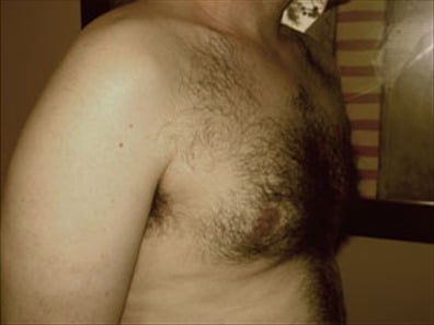 This is a 34-year-old male who presents with adolescent gynecomastia and presents for gynecomastia treatment with gland excision and liposuction of his chest. His primary goal is to get rid of the embarrassment that hes had for many years due to his chest enlargement. He would like to be able to take off his shirt in public and wants to enjoy more outdoor activity. He is 58, 160 pounds. He underwent gynecomastia breast gland excision and liposuction. From his right side he had 43 grams of gynecomastia breast tissue removed in addition to 425 cc of fat removed. His left side 28 grams of gynecomastia breast gland excised and 450 cc of fat removed. His surgery was performed in Marin County, California at Marin Cosmetic Surgery Center in Novato, California. His pictures are seen six months after surgery. Dr. Miguel A. Delgado is a gynecomastia specialist who performs gynecomastia surgery on patients from all around the United States and throughout the world. He has produced many documentaries regarding gynecomastia that have become very popular on YouTube -http://www.youtube.com/user/migueldelgadomd1/videos . Dr.. Delgados practice is centered in the California area and treats many patients from the Los Angeles, San Diego, Sacramento, San Jose, and San Francisco areas and he sees patients from the Florida and New York area as well as the mid west. Dr. Delgados gynecomastia surgical practice treats many revision gynecomastia patients, which is a testament to his gynecomastia expertise