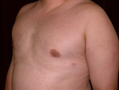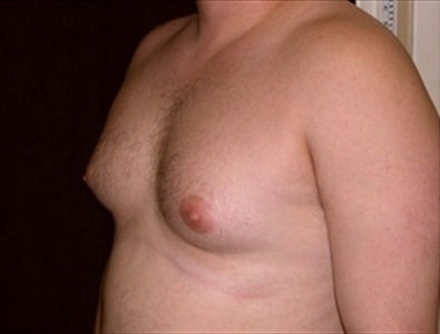 This 40 year old male complained about wanting to feel more comfortable going shirtless in public. His pseudo-gynecomastia developed later in life due to weight gain. He had suction assisted liposuction with glandular excision. In cases like this, Dr. Delgado tends to excise the heavier fiber-fatty tissue to get a better, more appealing contour.