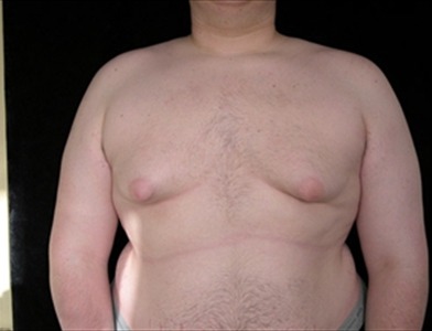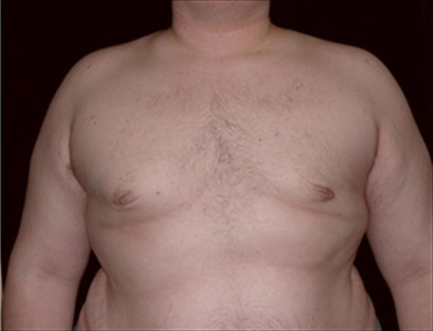 This 17-year-old young man is 62 and 280lbs. He suffers from adolescent gynecomastia which has caused him extreme embarrassment. He underwent glandular excision and suction-assisted lipectomy of the chest and axillae, from which I removed a total of 1200cc of fat bilaterally, as well as 109 grams of glandular tissue from the right side of the chest and 840 grams from the left. Due to significant excess skin and stretched areolae, he will require a secondary procedure to tighten up the peri-areolar area