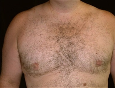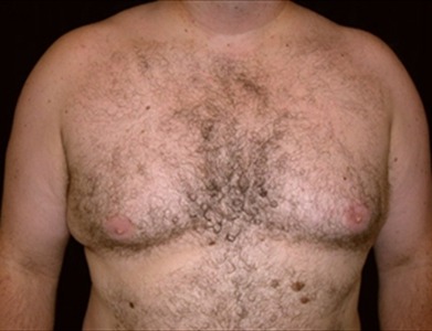 This 38-year-old man is 64 and 270lbs. He suffers from adolescent gynecomastia in addition to von Willebrands disease, a bleeding disorder. With the appropriate drugs to enhance his clotting ability, he was able to proceed with surgery. He underwent glandular excision and suction-assisted lipectomy of the chest, from which I extracted 400cc of fat bilaterally.