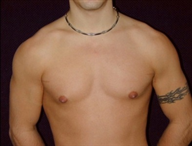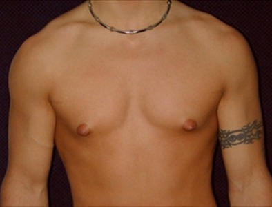 This is a 19 year old male who has adolescent gynecomastia compounded by fluffy nipples. His surgical goal was to flatten the nipple area and achieve a more masculine chest area. His surgery included suction assisted liposuction with glandular excision. The nipple area flattened nicely post-recovery.