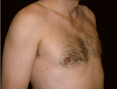This 40-year-old man is 63 and 205lbs. He suffers from adolescent gynecomastia. He underwent glandular excision and suction-assisted lipectomy of the chest. His goal was to be able to expose my chest.