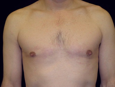 This 42-year-old man is 6 and 170lbs. He suffers from adolescent gynecomastia. He underwent glandular excision and suction-assisted lipectomy of the chest. His goal was to look better.