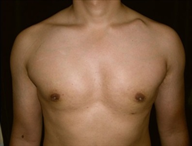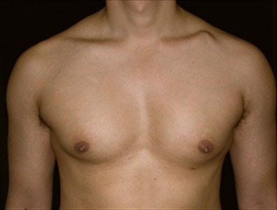 This 31-year-old man is 59 and 158 pounds. He deals with extreme embarrassment due to his gynecomastia, but does take off his shirt in public on occasion. He underwent glandular excision and suction-assisted lipectomy, from which I extracted 200cc of fat from each side. His goal was to flatten my nipples.