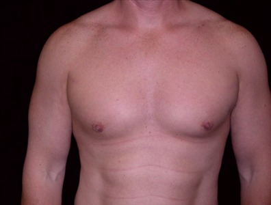 This 40-year-old man is 56 and 175 pounds. He suffers from steroid-induced gynecomastia. He undewent gynecomastia surgery twice in the past at other facilities prior to seeking my assistance. I performed glandular excision and suction-assisted lipectomy of his chest.