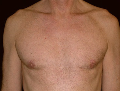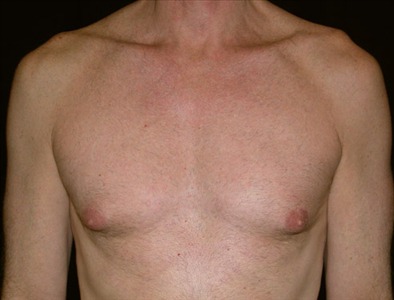 This 49-year-old man is 62 and 180lbs. He had gynecomastia surgery twice with other physicians. He sought out my help, wanting to undergo a third procedure as he was still unhappy with his result and was still uncomfortable taking off his shirt in public. He underwent glandular excision and suction-assisted lipectomy of the chest. His desired goal was to improve my appearance.