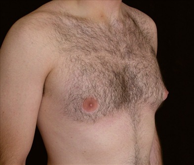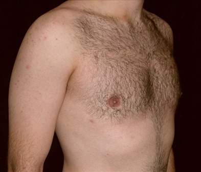 This 23-year-old man is 56, 150lbs. Having dealt with gynecomastia since puberty, he sought out my help to have a flat chest and feel comfortable taking off my shirt in front of others. In hopes of achieving the best result, he worked hard to lose twenty pounds prior to surgery. To correct his gynecomastia, I performed suction-assisted lipectomy along with glandular excision of the chest.