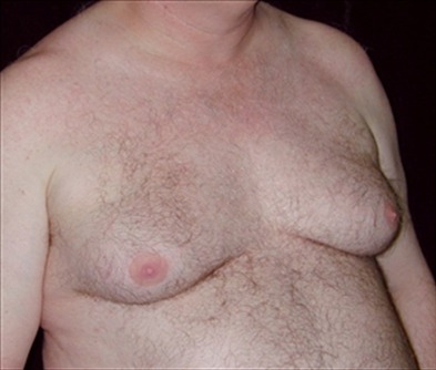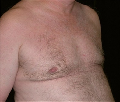 This 47-year-old man has had severe gynecomastia since he was 17. Prior to surgery, he never took off his shirt in public due to the appearance of his chest. Due to the severity of his case, he was advised at the consultation that a secondary procedure would be required. He may undergo this in the future.