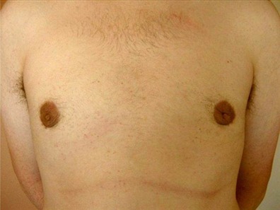 HISTORY: This is a 21-year-old resident of Solvang, California who presents with gynecomastia. He presented at the San Francisco, California office for evaluation of his adolescent gynecomastia. . He is 62, 220 pounds. He underwent gland excision and suction assisted lipectomy of his chest with 300 cc of fat aspirated from each side. He had 49 grams removed from his right and 54 from his left breast area. His surgery was performed at Marin Cosmetic Surgery Center in Marin County, California. His postoperative photographs were taken about two months after surgery.