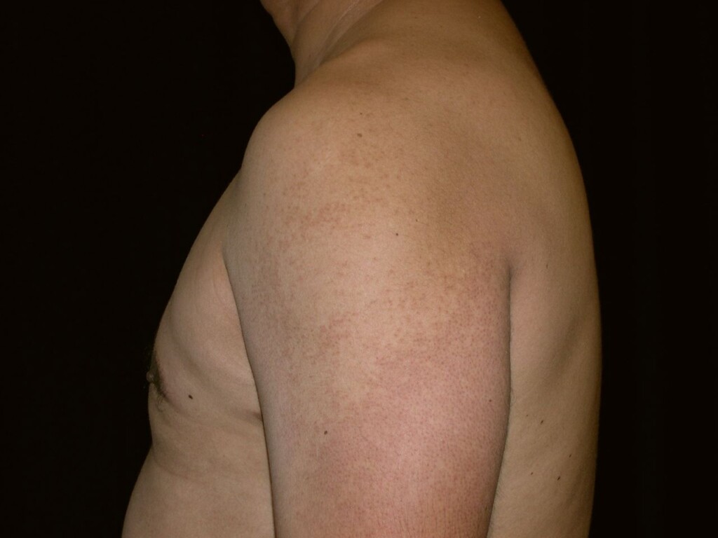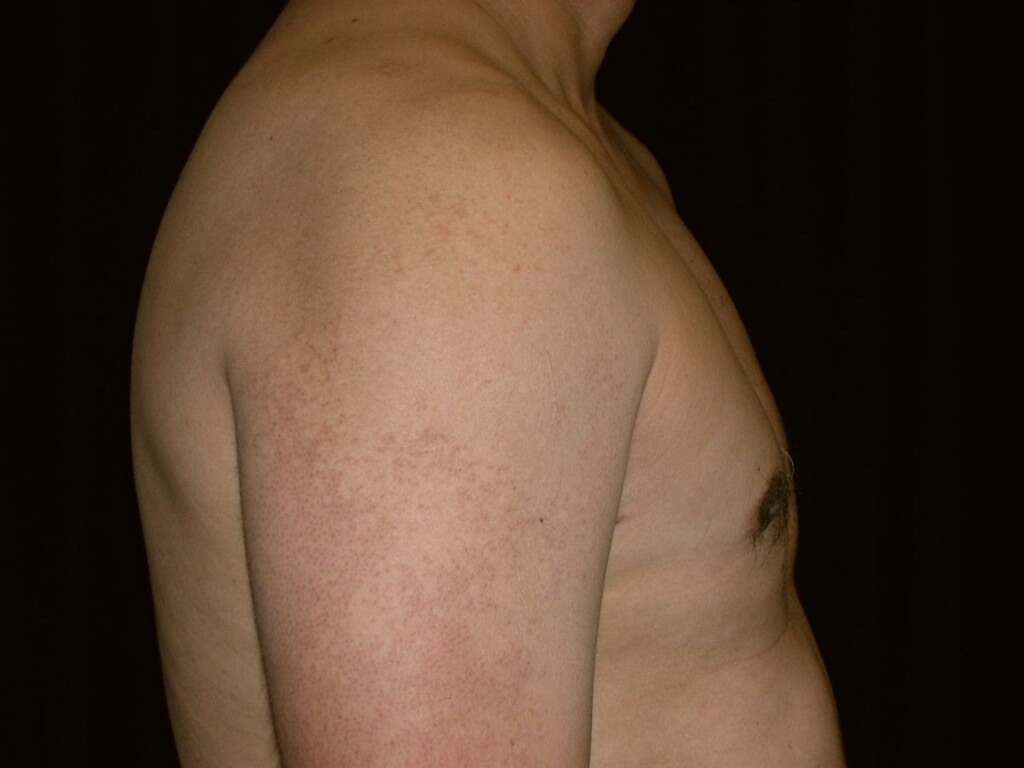 This is a 25 y.o. male 5 9 and 155 lb who underwent male breast reductions surgery for adolescent gynecomastia. He is seen 2 months after surgery.