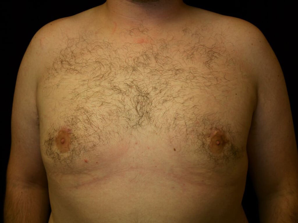 This is a 40 y.o. male 511 and 230 lb who underwent male breast reductions surgery for adult gynecomastia. He is seen 4 months after surgery.