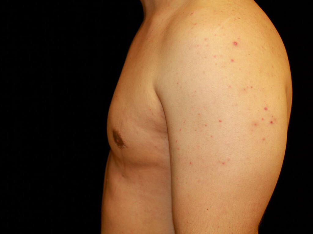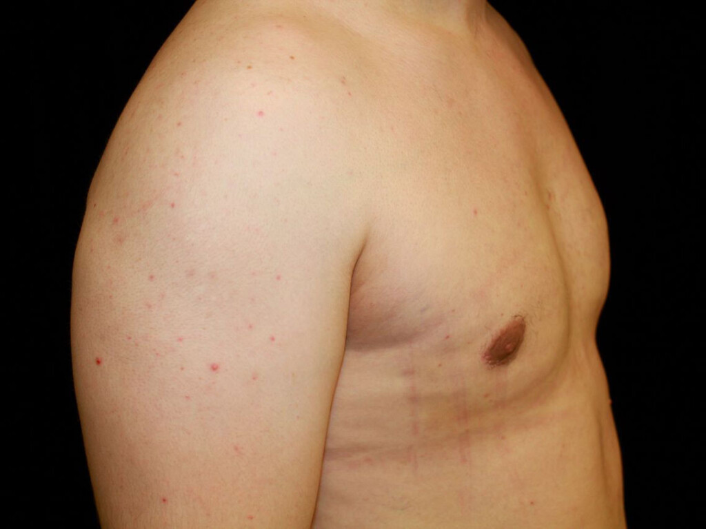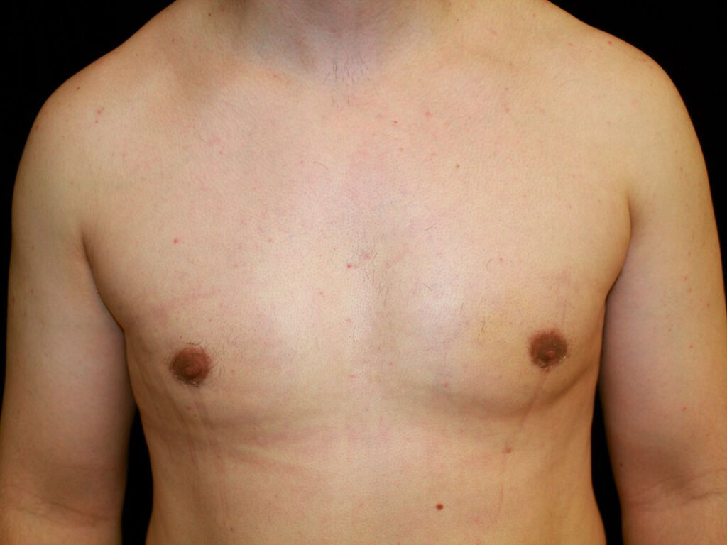 This is a 25 y.o. male 5 and 1 85 lb who underwent male breast reductions surgery for adolescent gynecomastia. He is seen 2 months after surgery.