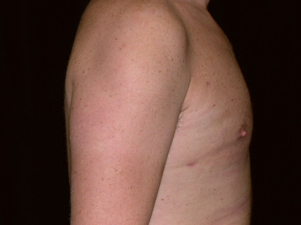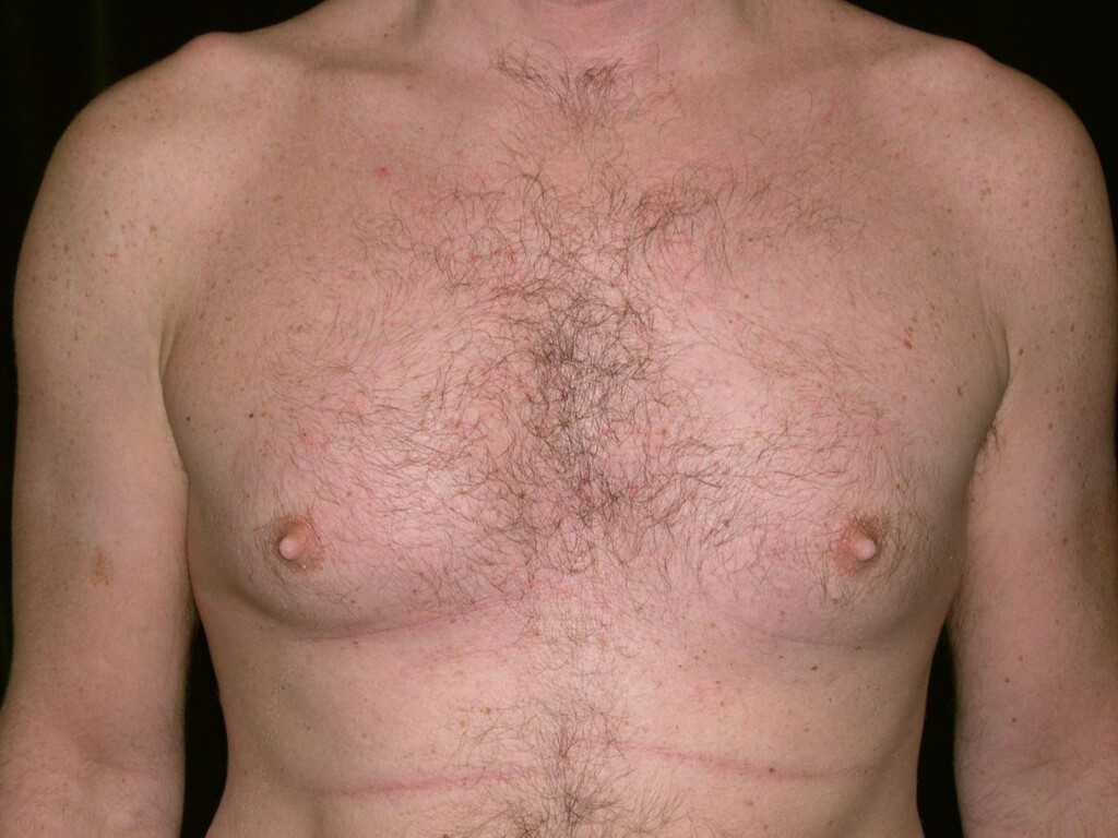 This is a 43 y.o. male 510 and 185 lb who underwent male breast reduction surgery for adult gynecomastia. He is seen 3 months after surgery.