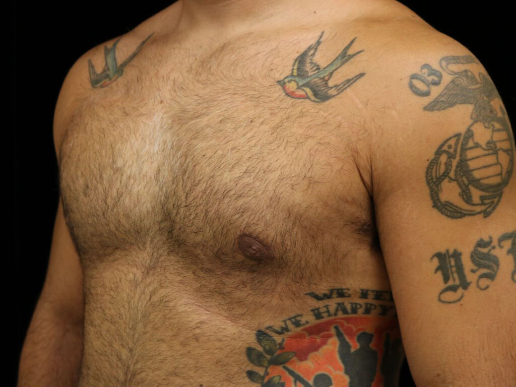 This is a 29 y.o. male 5 10 and 170 lb who underwent male breast reduction surgery for adolescent gynecomastia. He is seen 3 months after surgery.
