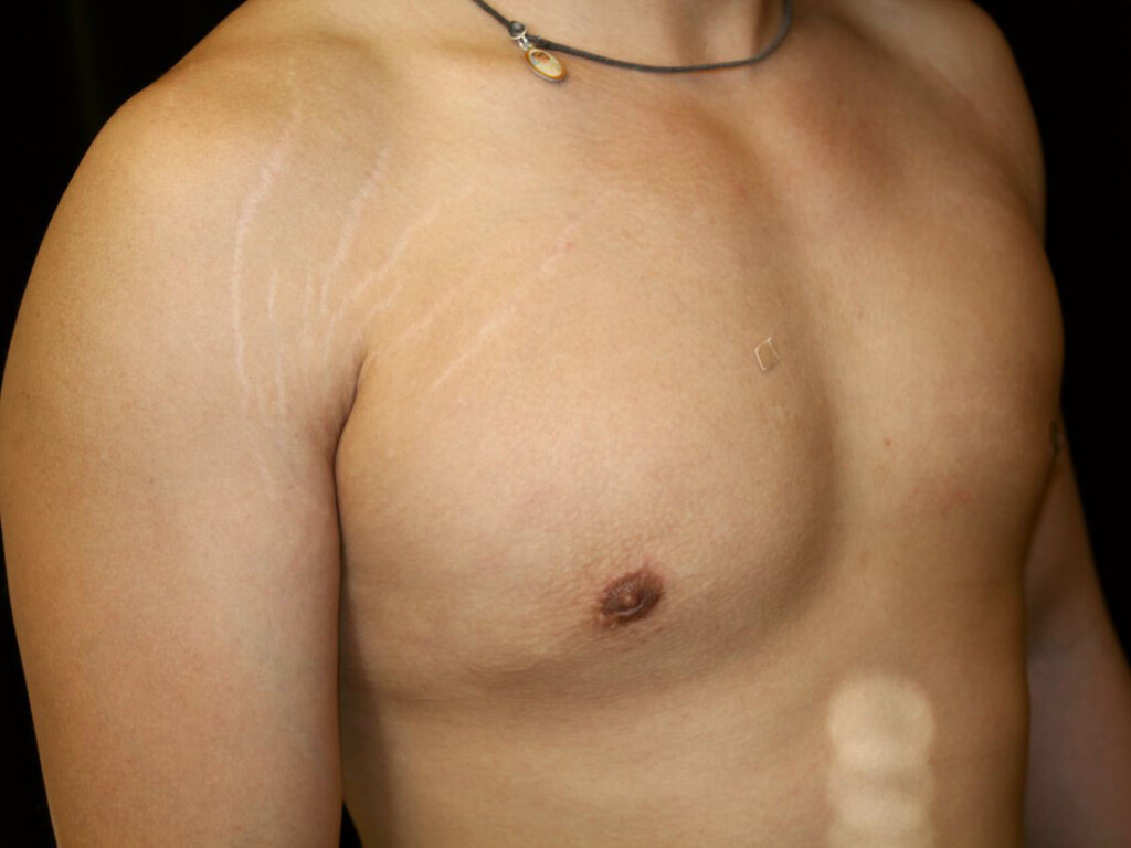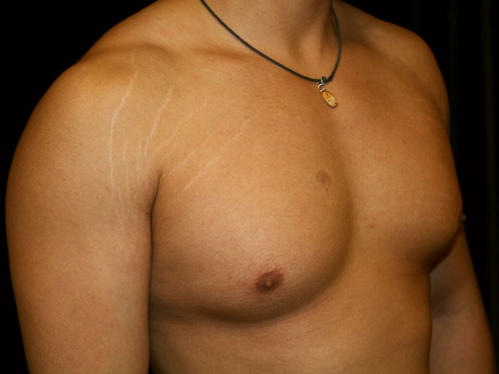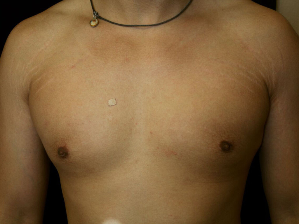 This is a 25 y.o. male 511 and 195 lb who underwent male breast reduction surgery for adolescent gynecomastia. He is seen 2 months after surgery.