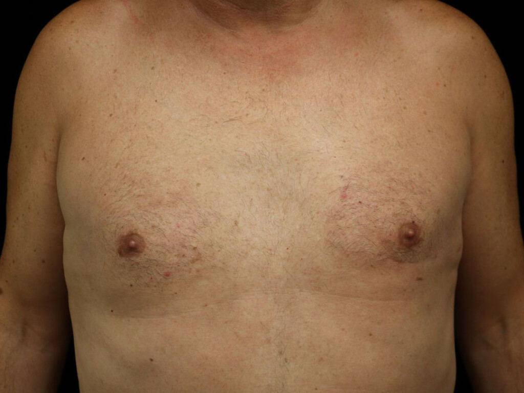 This is a 55 y.o. male 5 10 and 196 lb who underwent male breast reduction surgery for adult gynecomastia. He is seen 2 months after surgery.