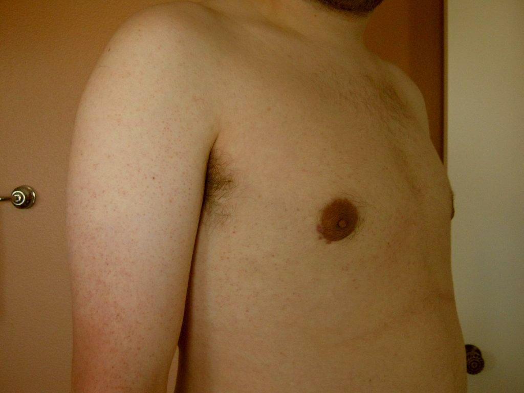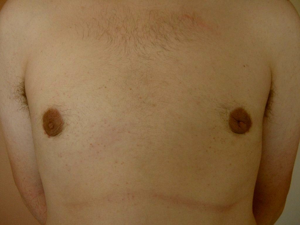 This is a 19 y.o. male 5 9 and 145 lb who underwent male breast reduction surgery for adolescent gynecomastia. He is seen 2 months after surgery.