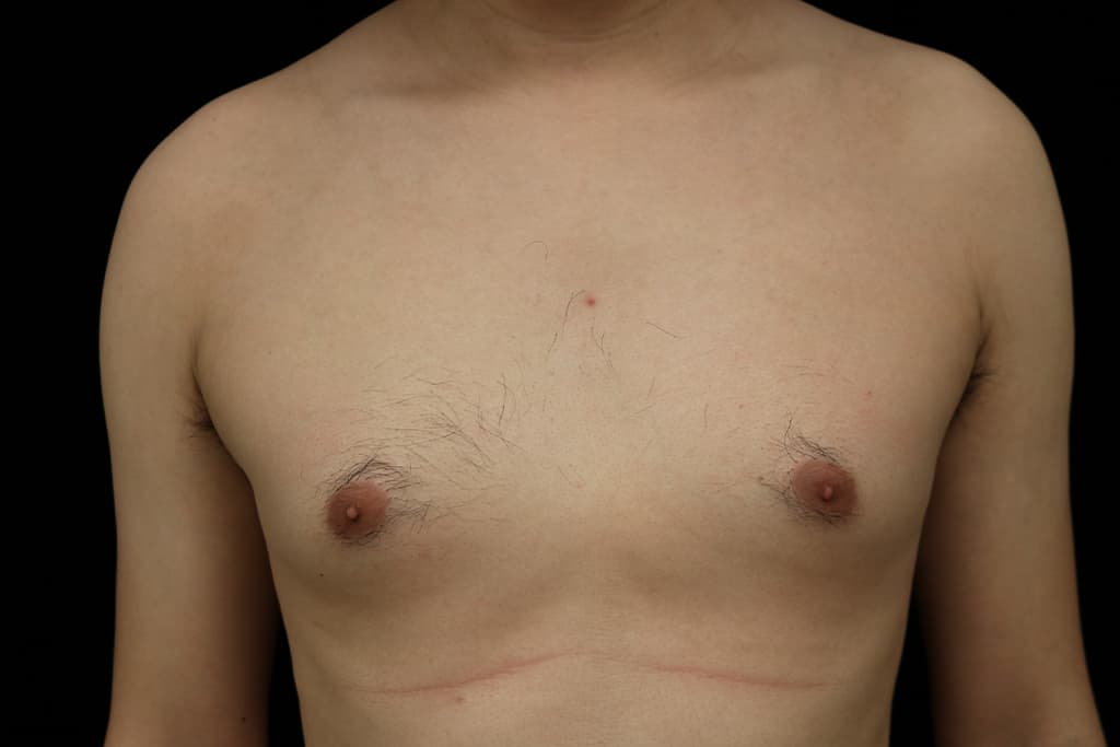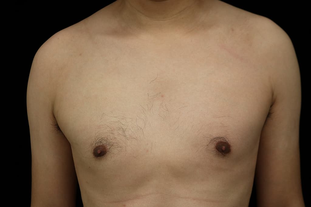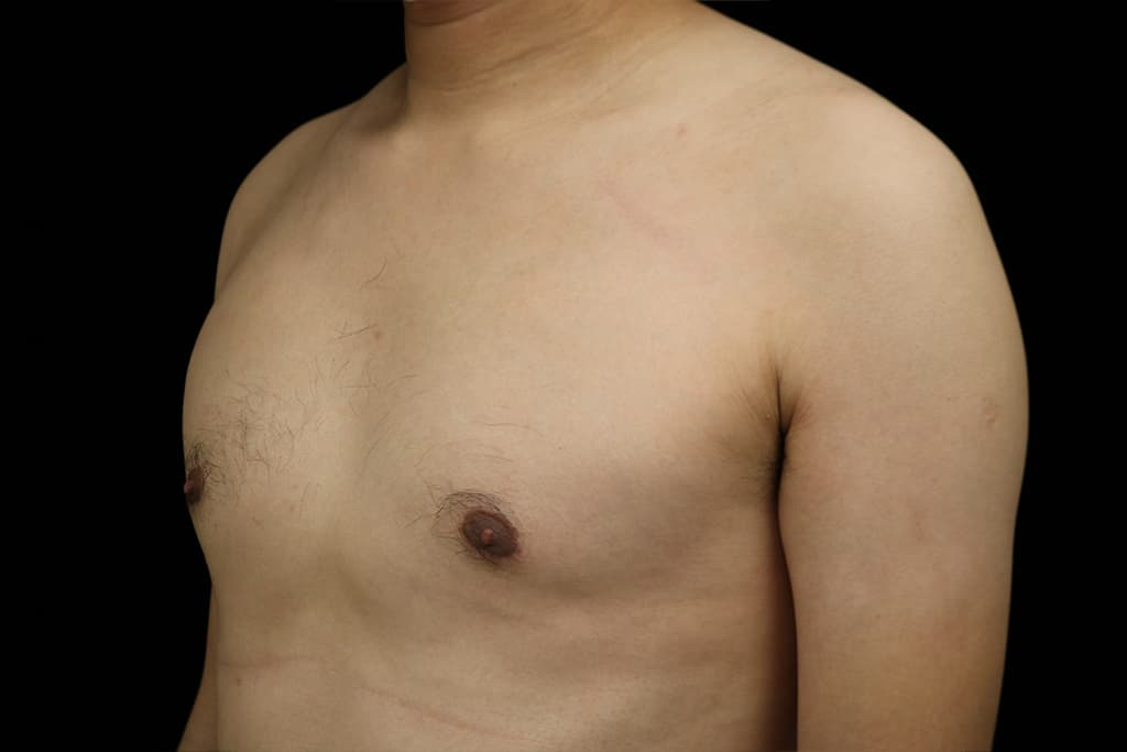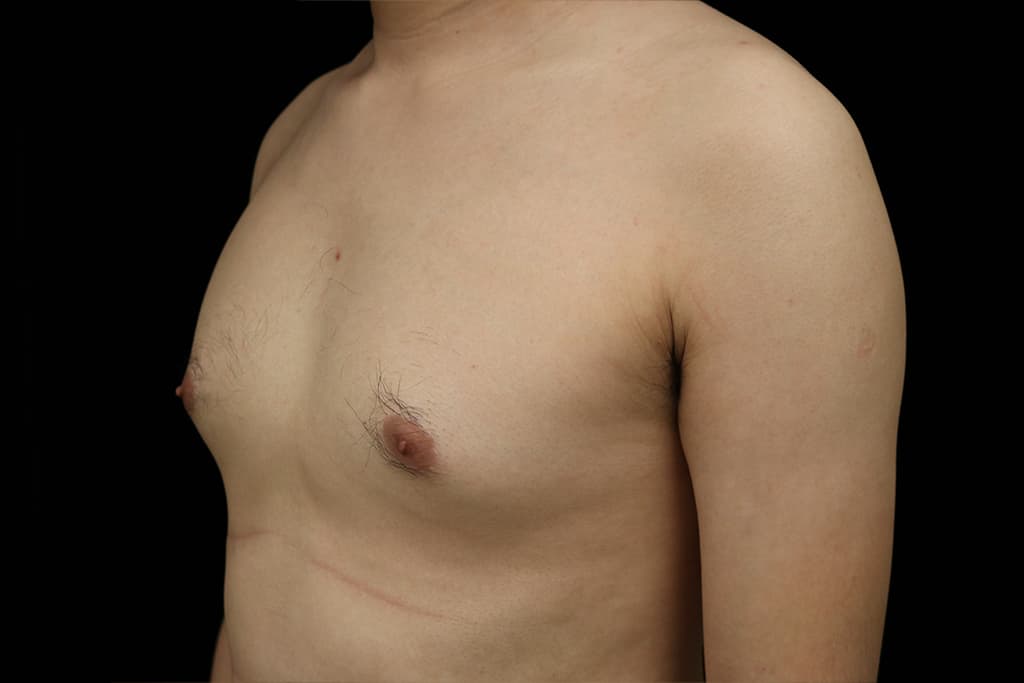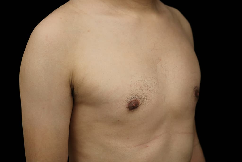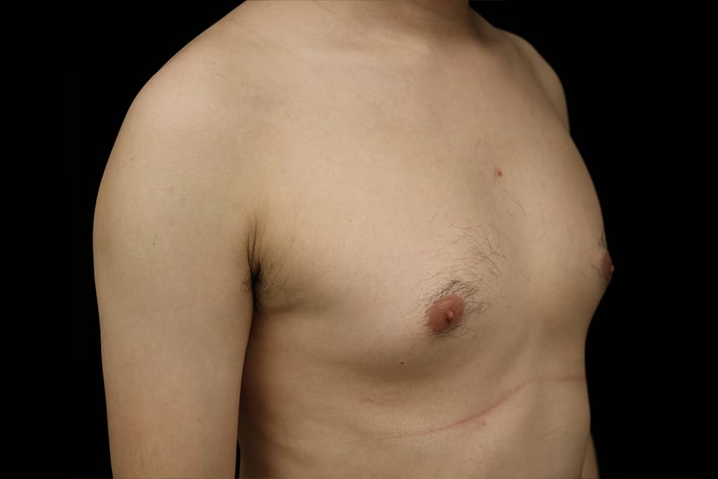 This patient is a 25-year-old male who presents with a grade 2 gynecomastia. He underwent male breast reduction surgery using the direct gland excision and liposuction technique. He is seen approximately 3 1/2 months after surgery.
