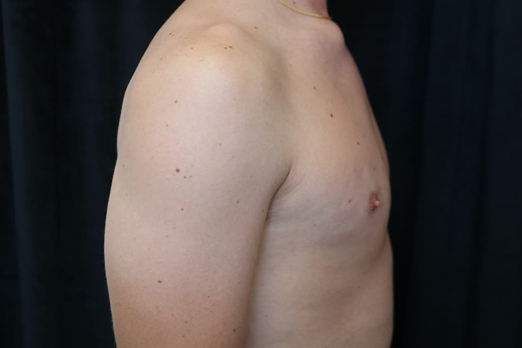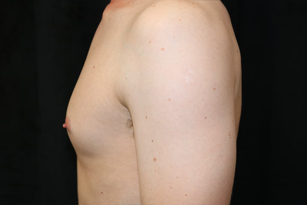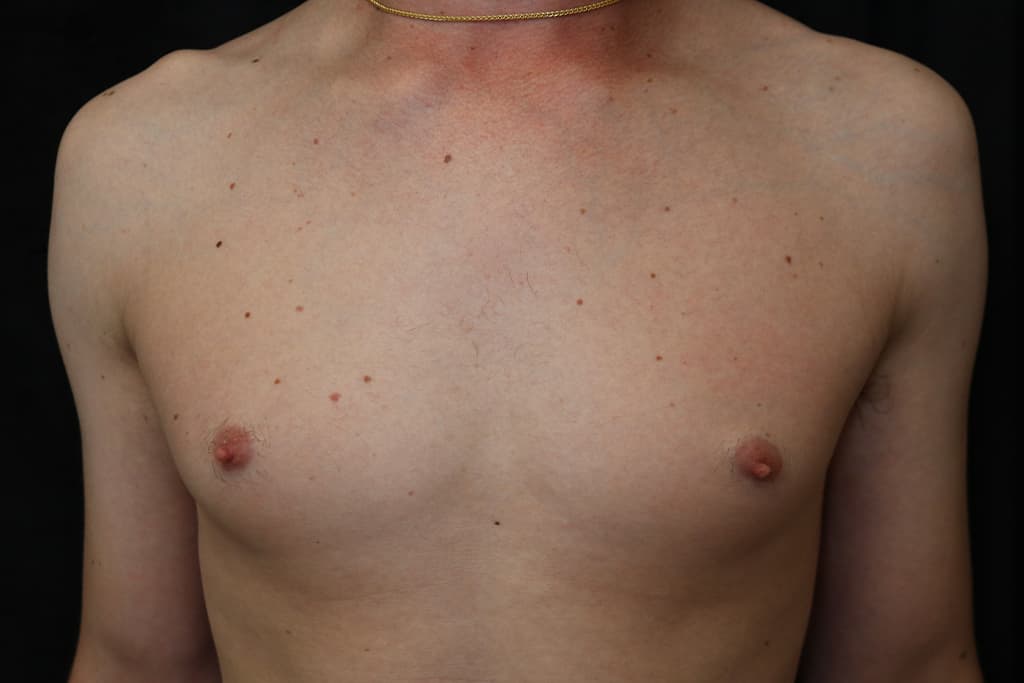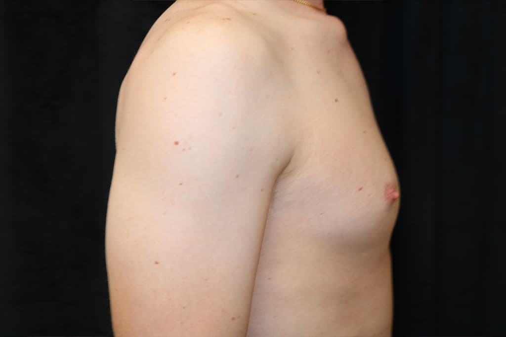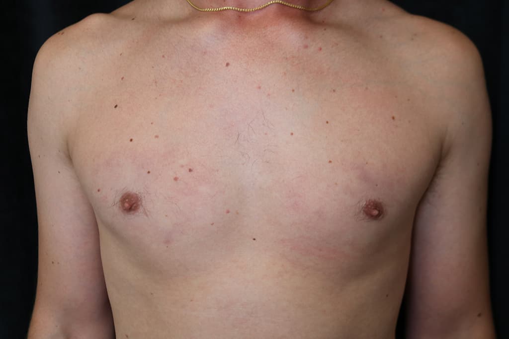 This patient is a 22-year-old male who presents with grade 2 gynecomastia and undergoes male breast reduction surgery with gland excision and liposuction. He is seen approximately three months after surgery.