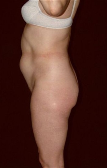 CASE DESCRIPTION: This is a 39-year-old resident of Mill Valley, California who presented to the San Francisco office at Union Square for evaluation for liposuction. She is 5 feet 3 inches and 135 pounds. She underwent ultrasonic liposuction of the abdomen with 800 cc extracted and 900 cc in the flanks, 400 cc from the inner thighs and 800 cc from the outer thighs. Her surgery was performed at Marin Cosmetic Surgery Center in Marin County, California. These photographs were taken one year after her initial surgery. Note the overall decrease in size and two-size reduction.