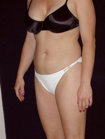 This is a 35-year-old, female resident of Napa, California who presented to the Novato office in Marin County, California for evaluation for liposuction. She is 5 feet 6 inches and weighs 140 pounds. She underwent liposuction of the abdomen, flanks, inner and outer thighs at Marin Cosmetic Surgery Center in Marin County, California. She had a total of 5500 cc of fat extracted from these areas. Her photographs were taken one year after surgery. Note the much slimmer body appearance.