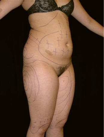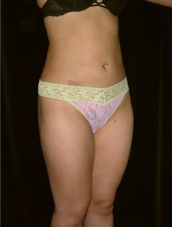 This is a 38-year-old resident of Sonoma County who presented to the Novato office in Marin County, California for evaluation for liposuction. She underwent ultrasonic liposuction of the abdomen, flanks, inner/outer thighs, upper hips and knees. She had a total of 6500 cc of fat removed from these areas at the Marin Cosmetic Surgery Center in Marin County, California. Her photographs were taken nine months after her surgical procedure. Note the even skin contour and a reduction in two clothes sizes.