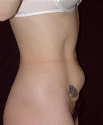 This is a 35-year-old resident of Berkeley, California who presented to the San Francisco office at Union Square for evaluation for liposuction. She is 5 feet 5 inches tall and weighs 124 pounds. She had a C-section in the lower abdominal region. She underwent ultrasonic liposuction of the abdomen of 1200 cc of fat and a scar revision simultaneously. Her procedure was performed at Marin Cosmetic Surgery Center in Marin County, California. Note the beautiful, flat abdominal region.