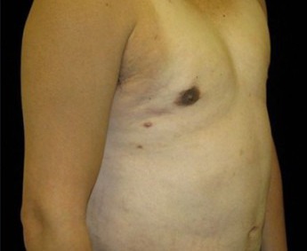This is a 45-year-old, male resident of Tiburon, California who presented to the Novato office in Marin County, California for evaluation of gynecomastia and liposuction. He is 5 feet 11 inches tall and weighs 190 pounds. He underwent male breast reduction with gland excision and liposuction of his chest and liposuction of the abdomen and flanks. He had a total of 3500 cc of fat extracted from these areas at Marin Cosmetic Surgery Center in Marin County, California. His photographs were taken six months after surgery.