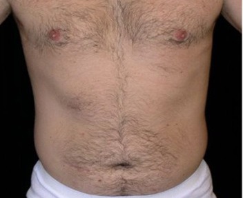 This is a 32-year-old, male resident of Sonoma, California who presented to the Novato, California office location in Marin County for evaluation for liposuction. He is 5 feet 11 inches tall and weighs 192 pounds. He underwent ultrasonic liposuction of the abdomen 1200 cc of fat and the flanks of 1000 cc. His procedures were performed at Marin Cosmetic Surgery Center in Marin County, California. He had gynecomastia surgery one year previously, which entailed male breast reduction with breast glandular excision and suction-assisted lipectomy. Note the slimmer appearance with a 1½-inch reduction in his waist. The photographs were taken nine months after surgery.