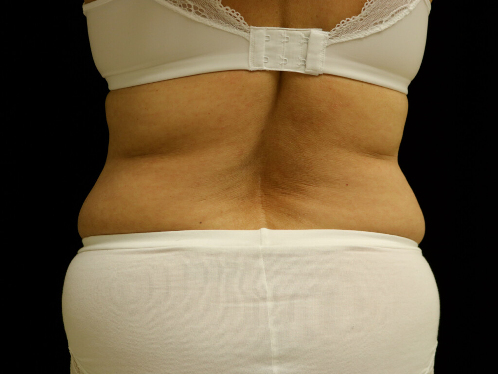 This is a 52 y.o. female who is 5 4 and weighs 148 lbs and presents with lipodystrophy of the flanks. She underwent Power-Assisted Liposuction (PAL) of this area, and post-operative photos are seen 9 months after surgery.