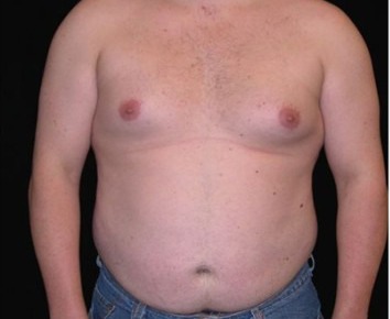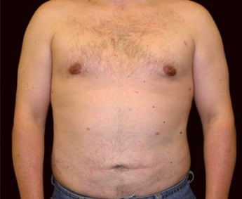 This is a 34-year-old, male resident of Sonoma, California who presented to the Novato office at Marin County, California for evaluation for gynecomastia and liposuction. He underwent male breast reduction with gland excision and suction-assisted liposuction of the chest of 150 cc from each side. In addition, he had liposuction of the abdomen with the removal of 1600 cc from this region and 2200 cc from the flank area. His procedures were performed at Marin Cosmetic Surgery Center in Marin County, California. He is 5 feet 6 inches and 205 pounds. He reduced his waistline by 2½ inches. These photographs were taken eight months after surgery.