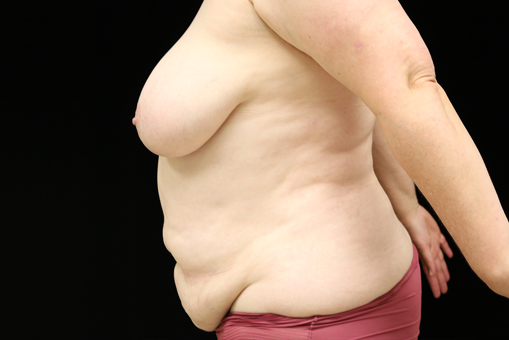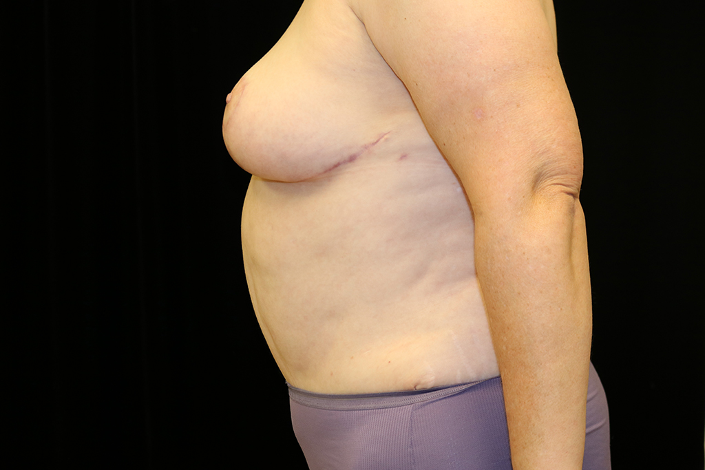 This patient is a 49-year-old female who had previous abdominal surgery and presents for a mommy makeover. She underwent a breast reduction and a tummy tuck with liposuction of the flanks. She is seen approximately five months after surgery; her incisions healed.