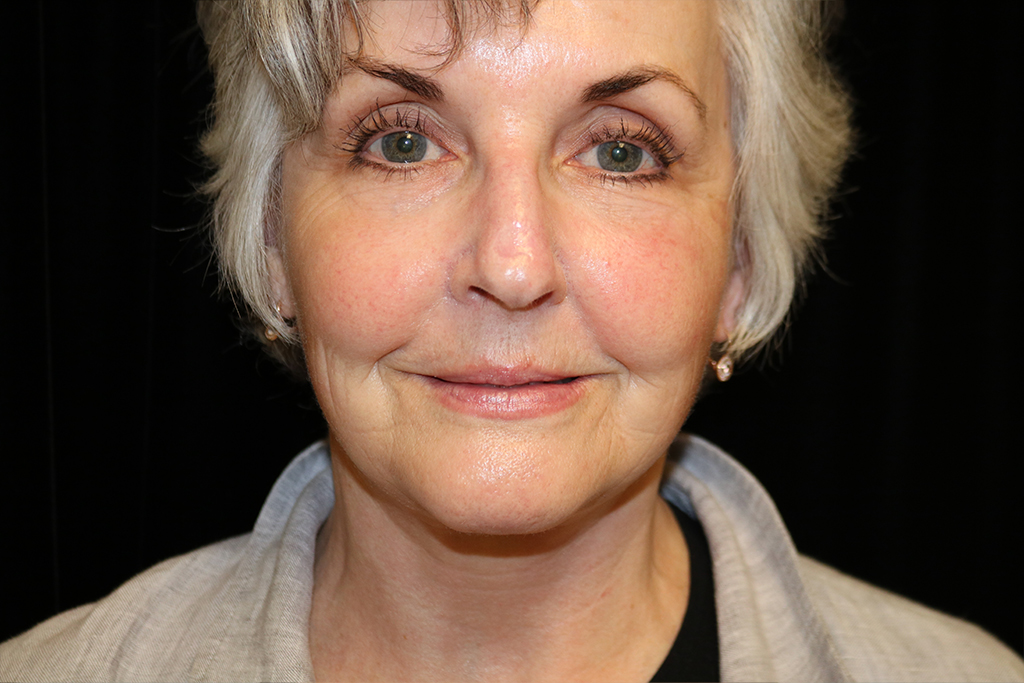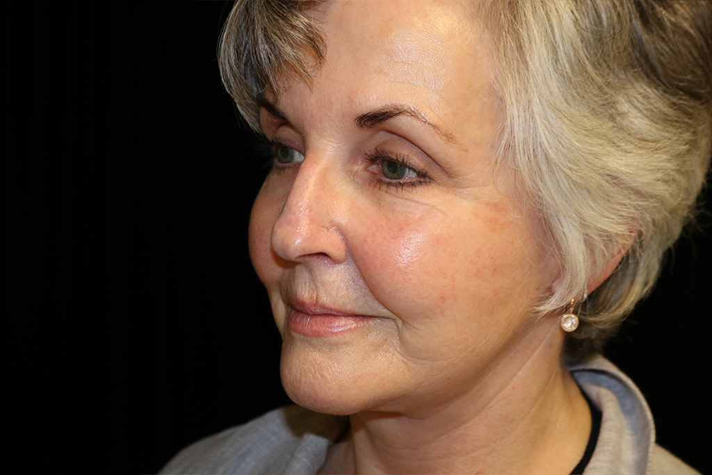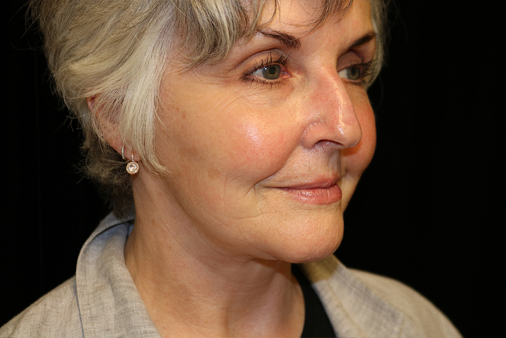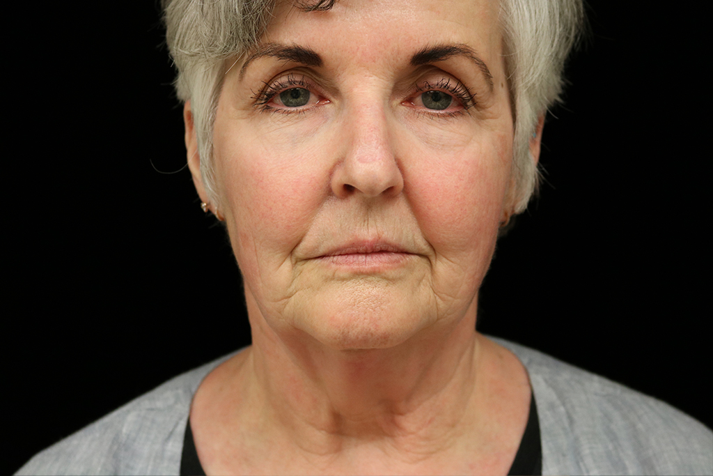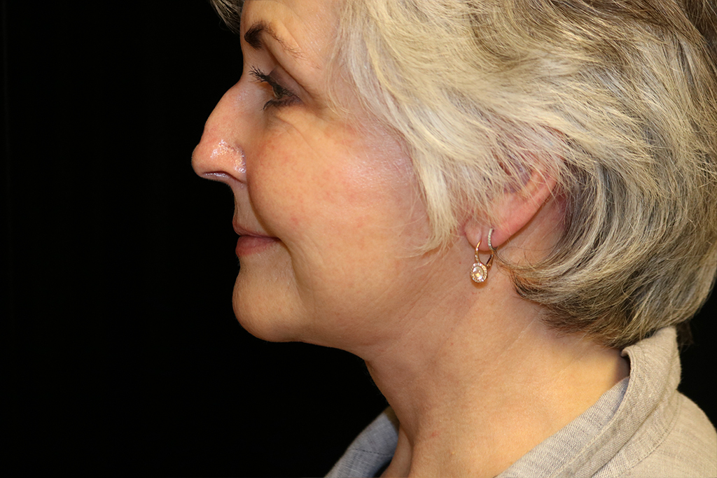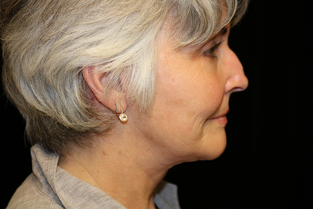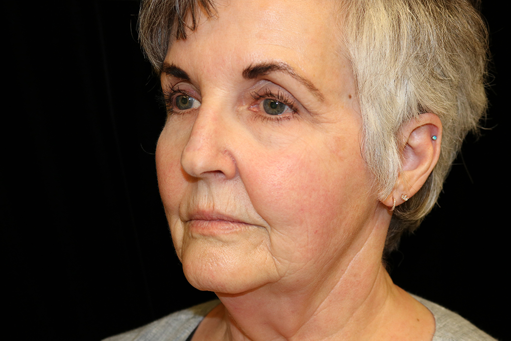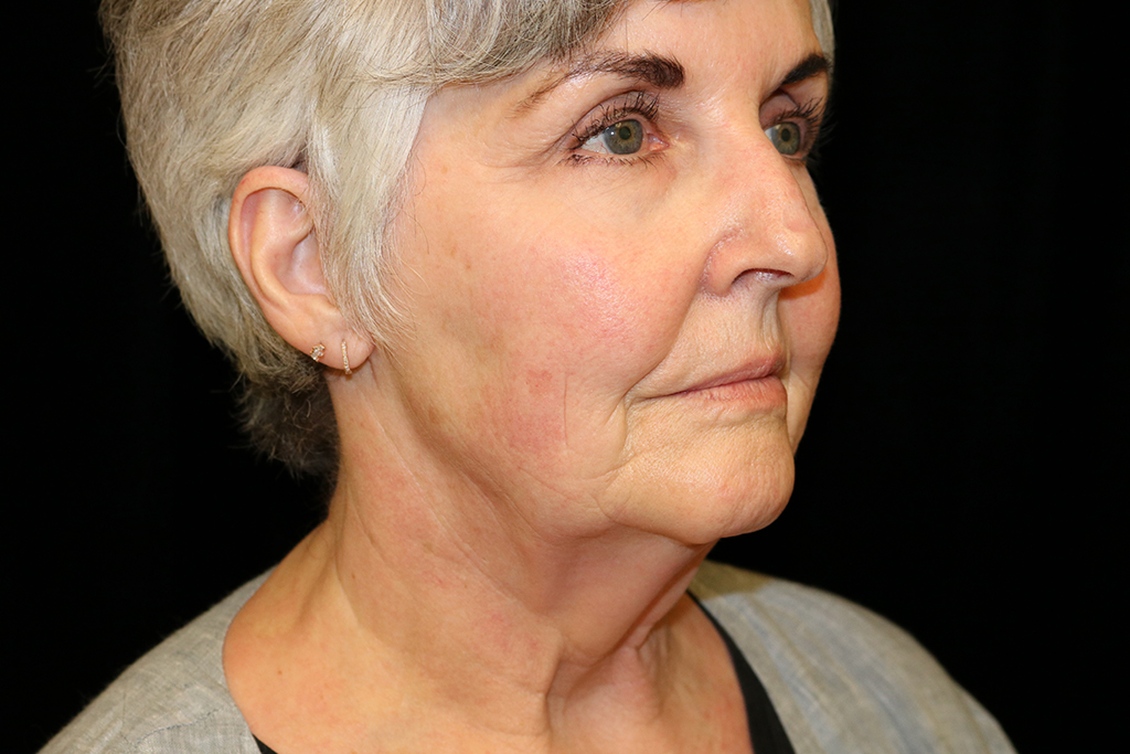 This patient is a 55-year-old female who presents with an aging face and complaints of gravitational aging in the jowl region and neck. Three months after a vertical SMAS face and neck lift, the photos are seen.