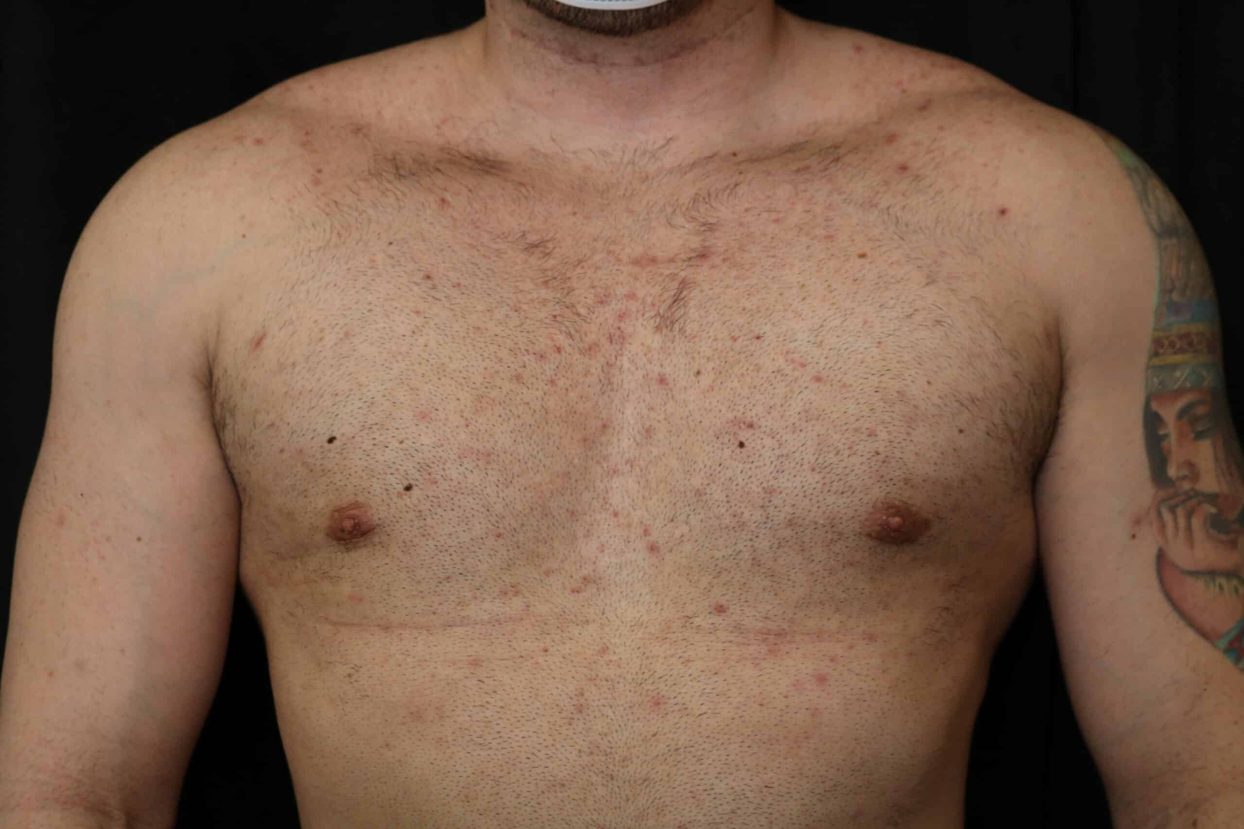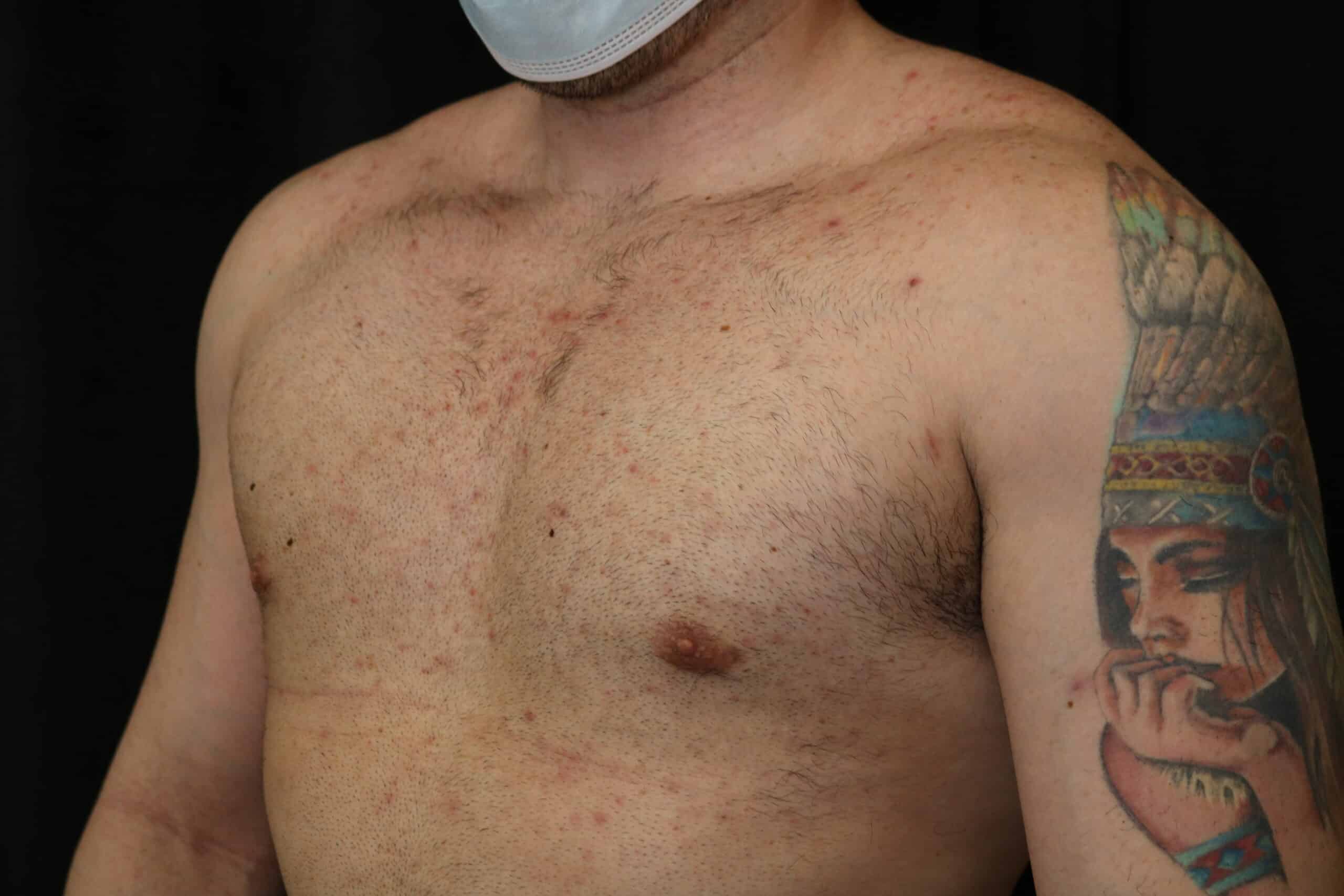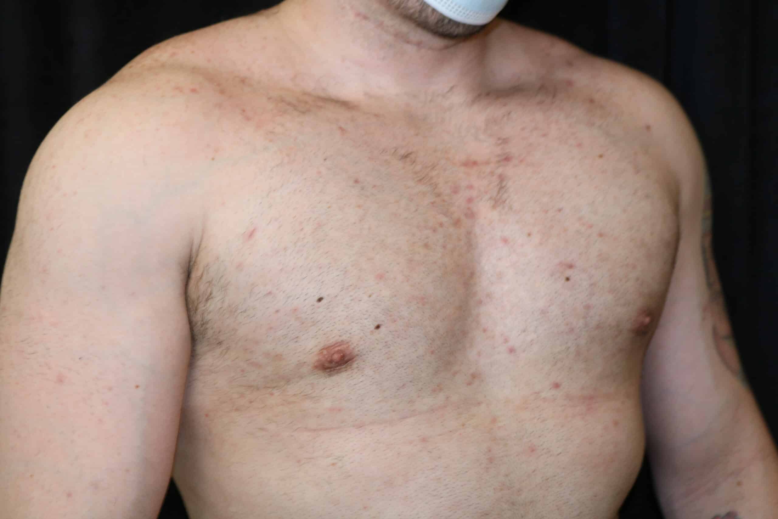 This is a 29 year old male 6’0″ 190 pounds who presents for male breast reduction surgery due to steroid testosterone induced gynecomastia. He is seen 4 months after surgery.