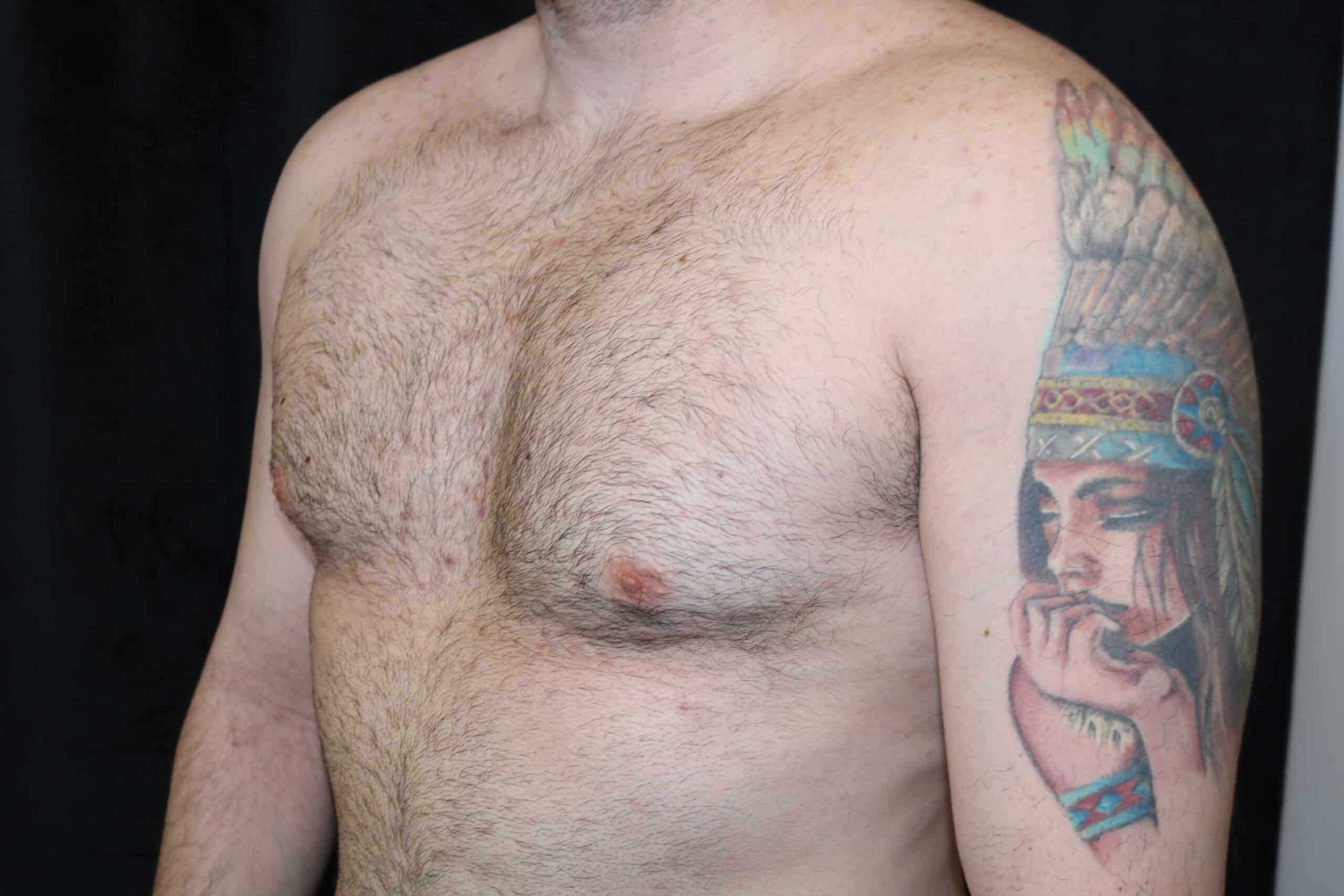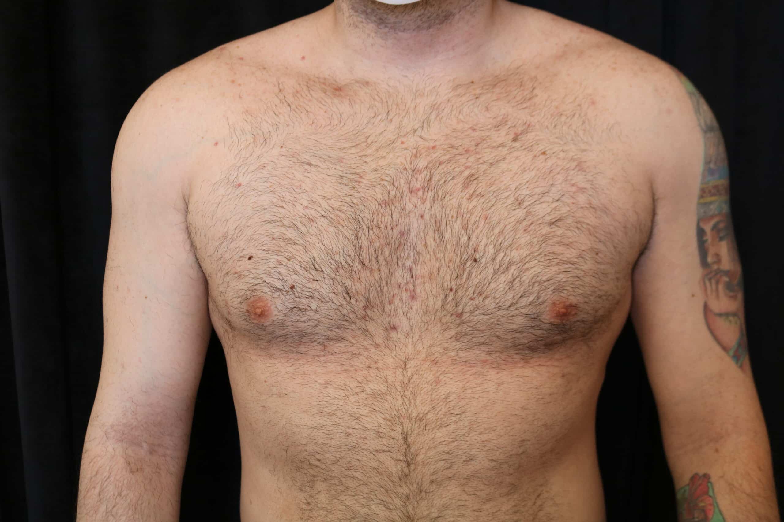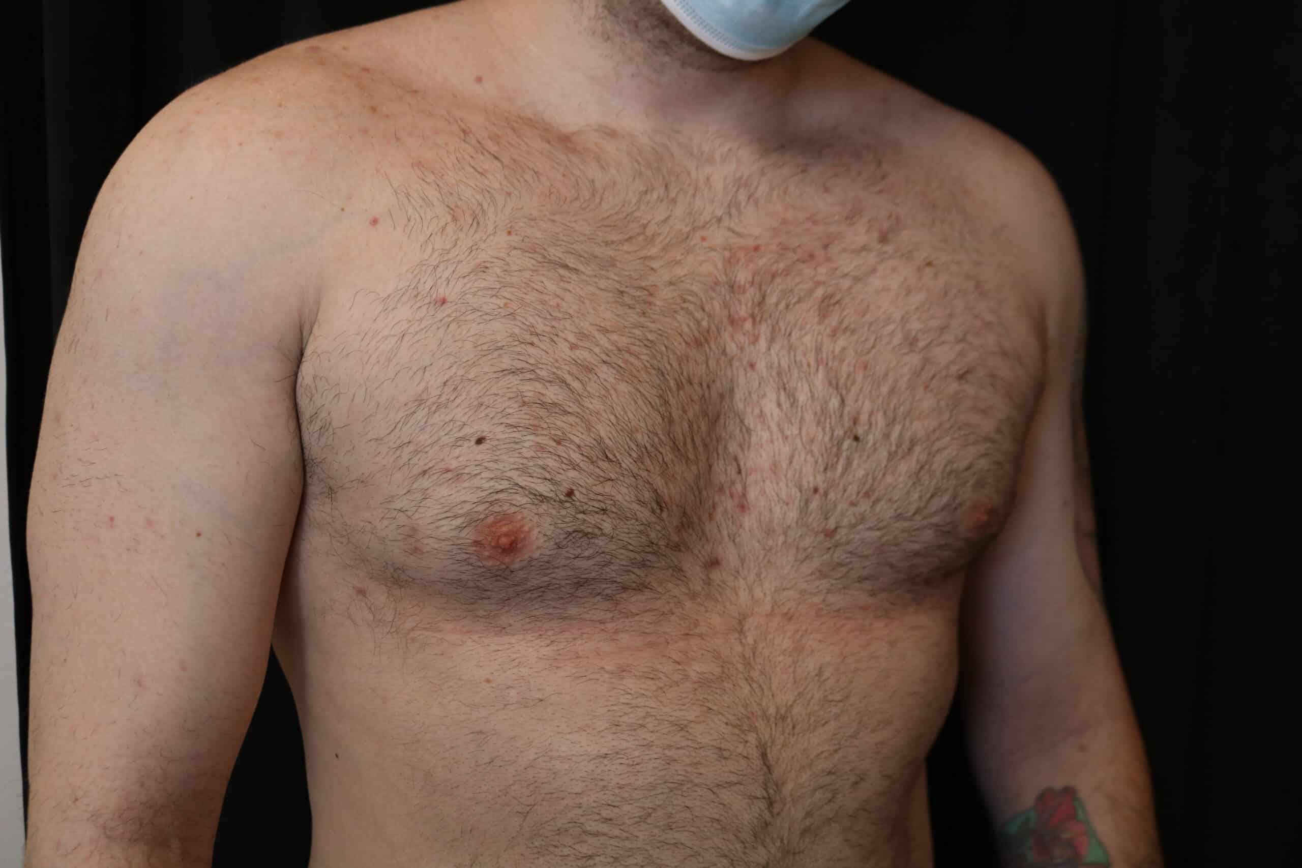 This is a 29 year old male 6’0″ 190 pounds who presents for male breast reduction surgery due to steroid testosterone induced gynecomastia. He is seen 4 months after surgery.