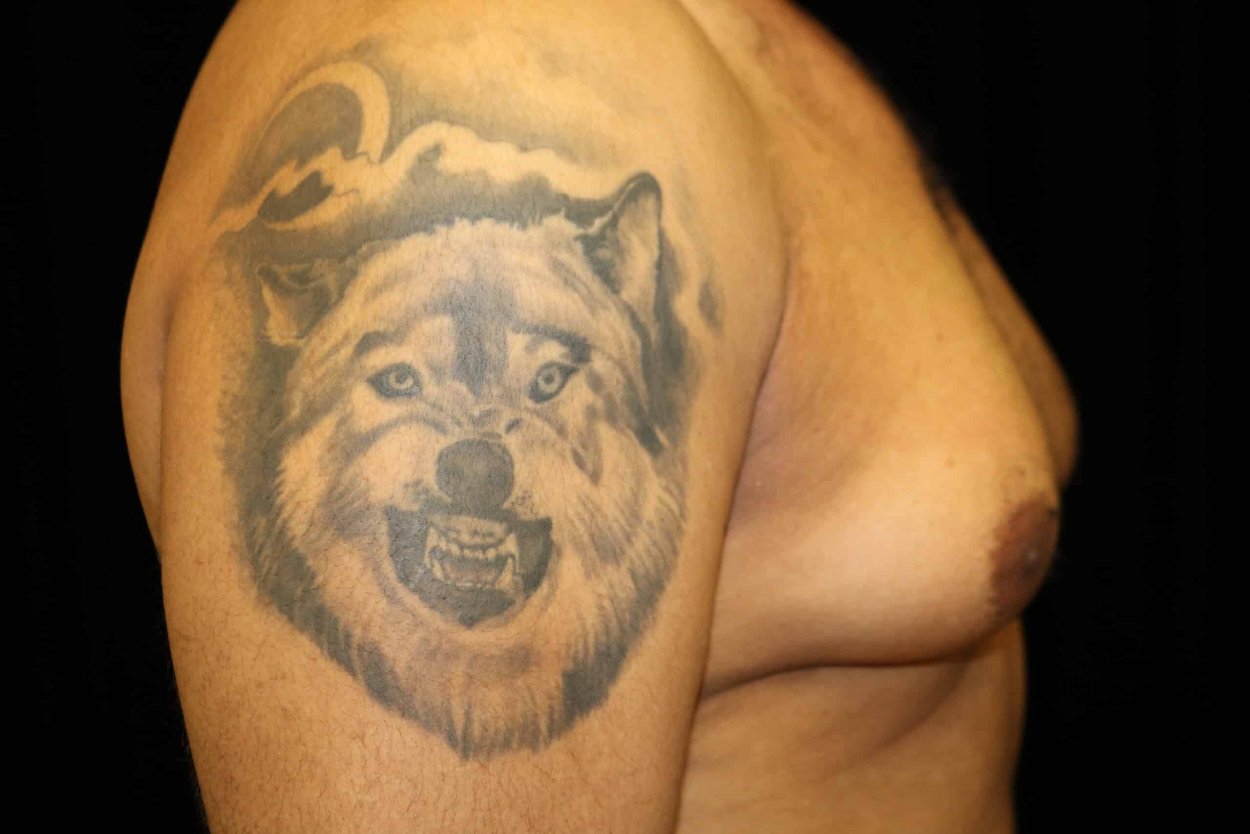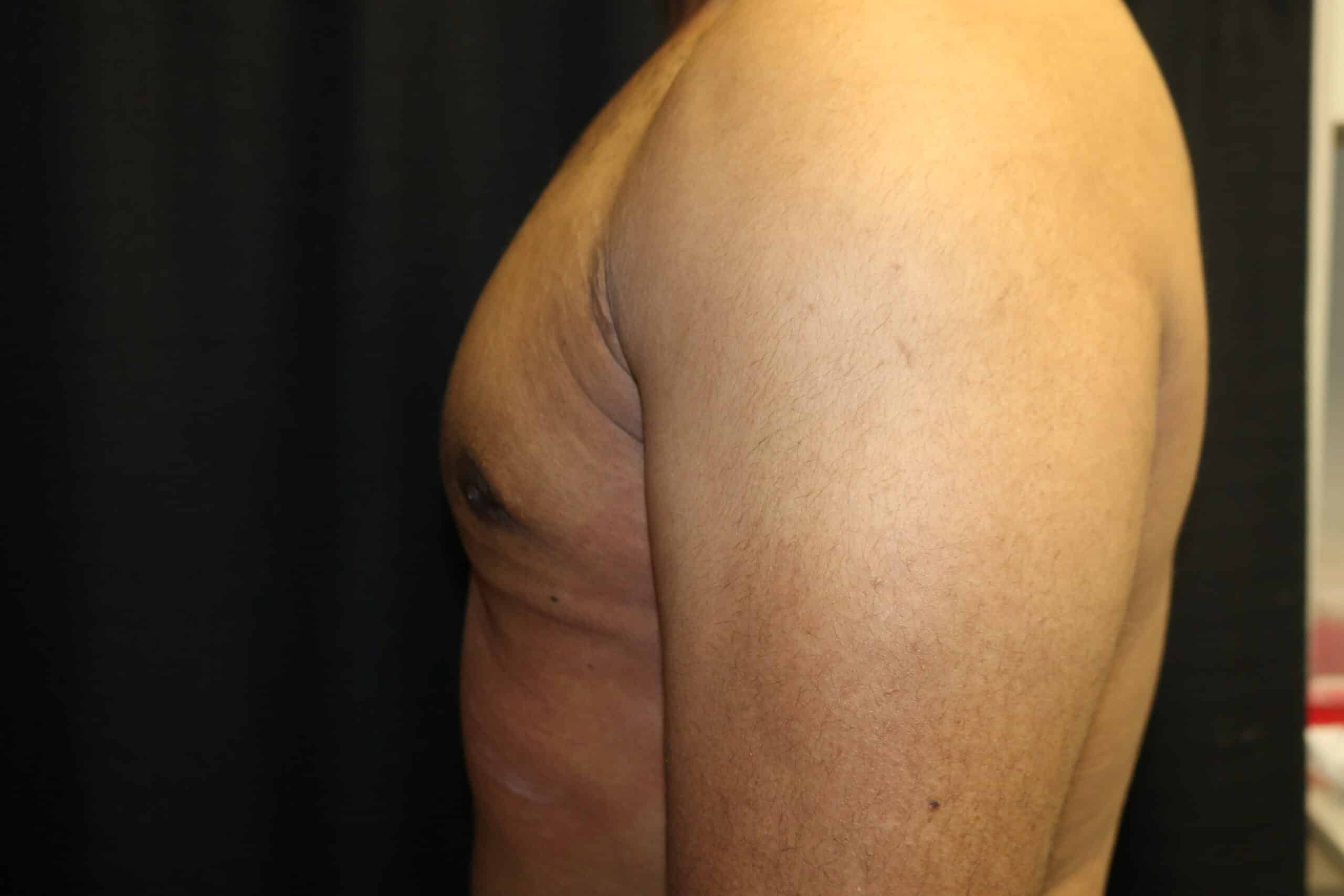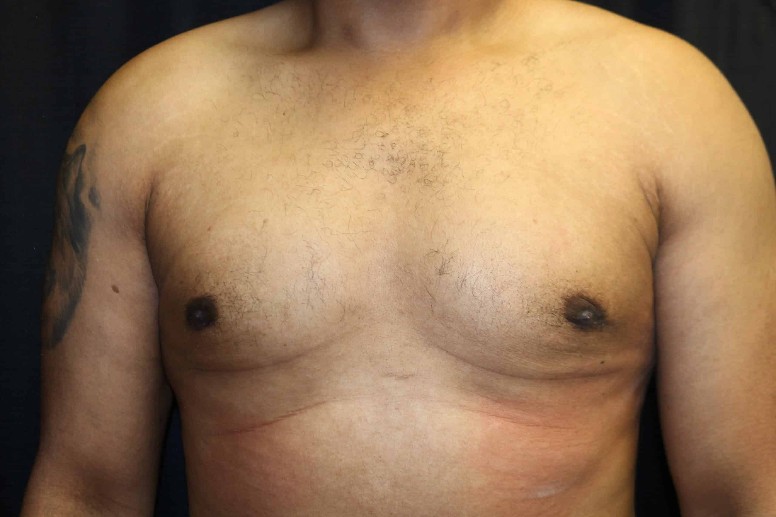 This is a 27 year old male 6’1″ 205 pounds, who underwent male breast reduction surgery for stage 3 gynecomastia. He is seen 3 months after surgery.