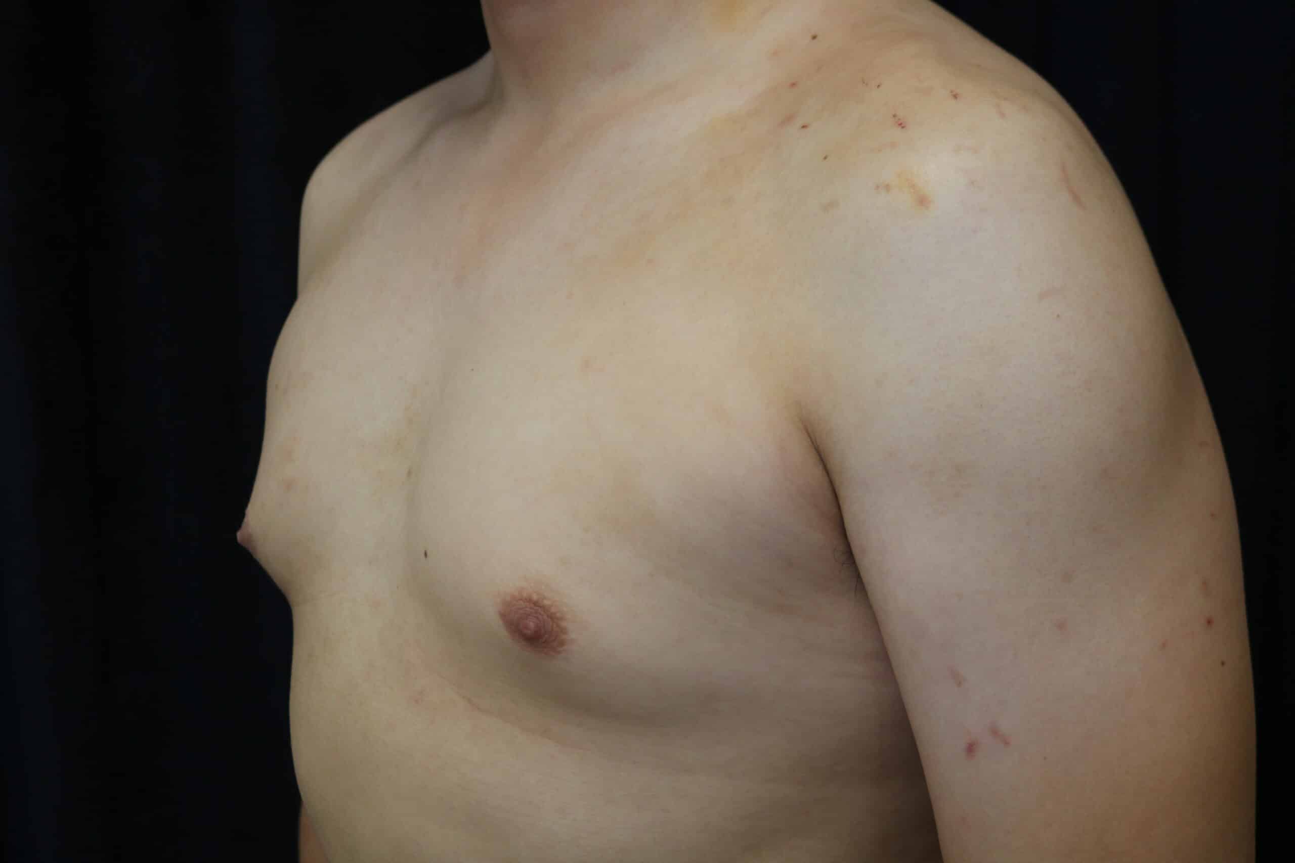 This is a 26 year old male 5’10” 180 pounds who underwent male breast reduction surgery for grade 2 adolescent gynecomastia. He is seen 3 months after surgery.
