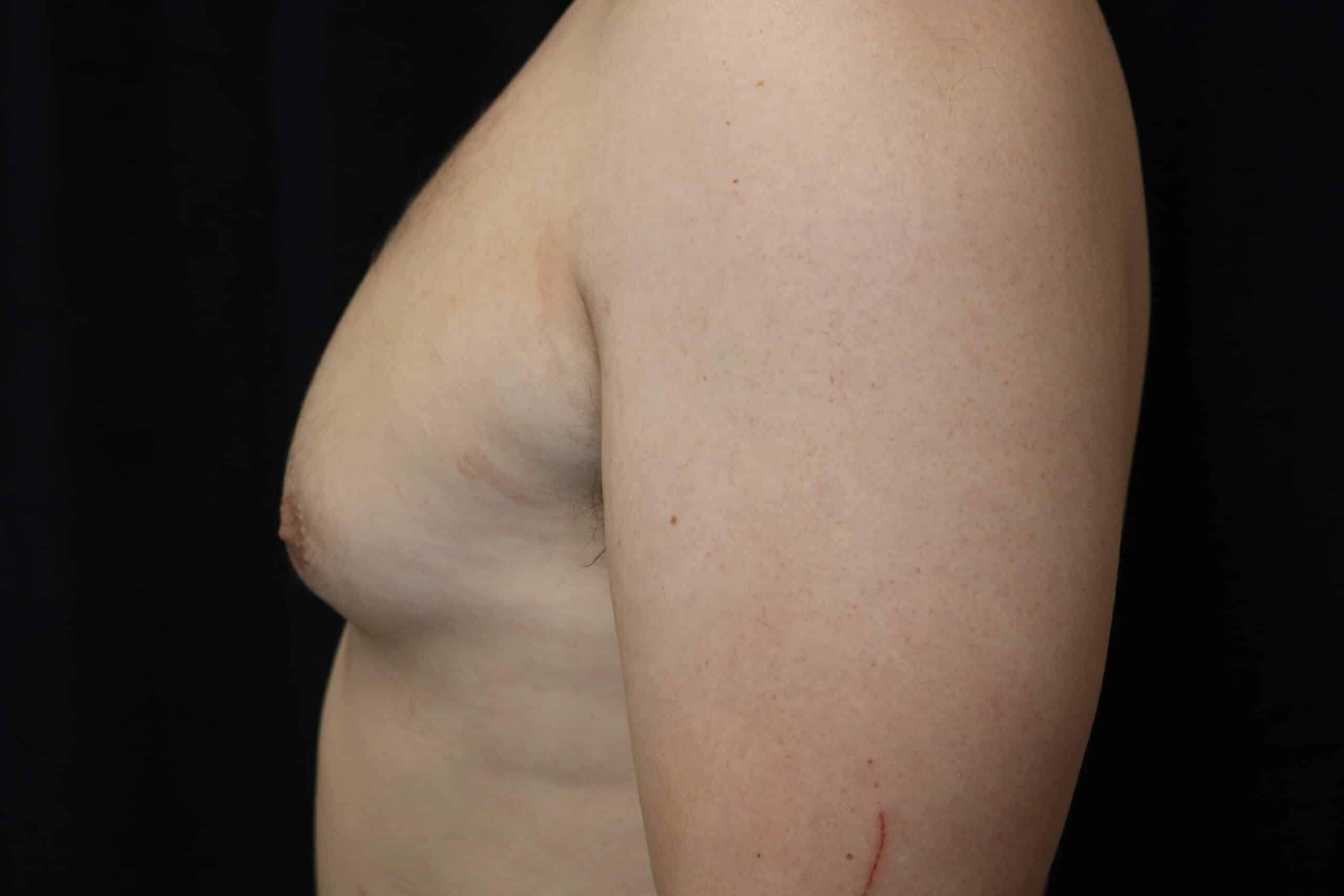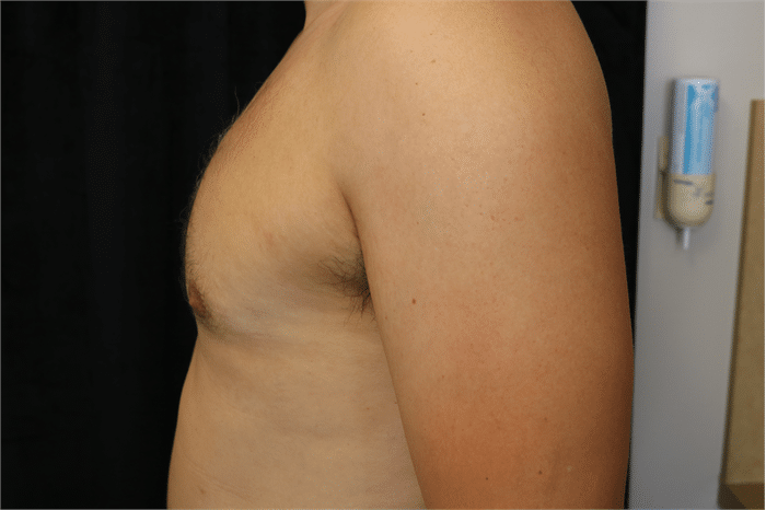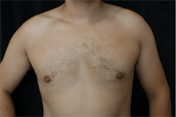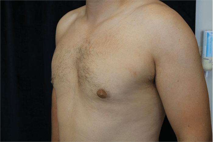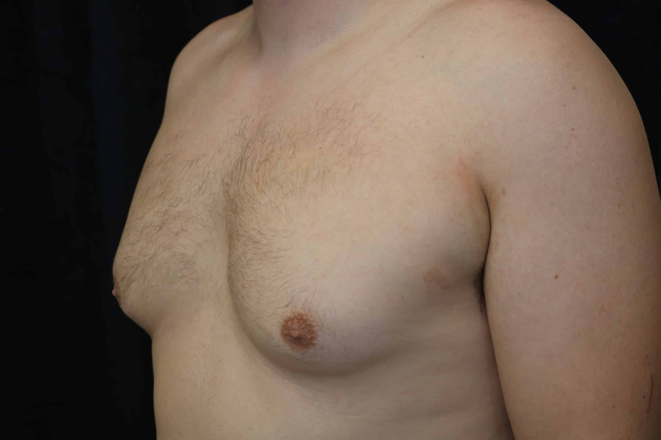 34 year old male who underwent male breast reduction surgery for grade 2 gynecomastia. He is seen 3 months after surgery.