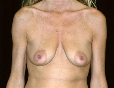 CASE DESCRIPTION: This is a 38-year-old female and a resident of Napa, California. She presented to our Novato office in Marin County for evaluation for a breast lift. She is 5 feet 1 inch and 107 pounds. She is the mother of two. She underwent a peri-areolar breast lift augmentation with Mentor 275 cc normal-saline implants inflated up to 375 ccs on the right and 365ccs on her left. The positions of the implants are sub-muscular. The procedure was performed at Marin Cosmetic Surgery Center in Marin County, California. Her size has changed from a size B cup to a size D.