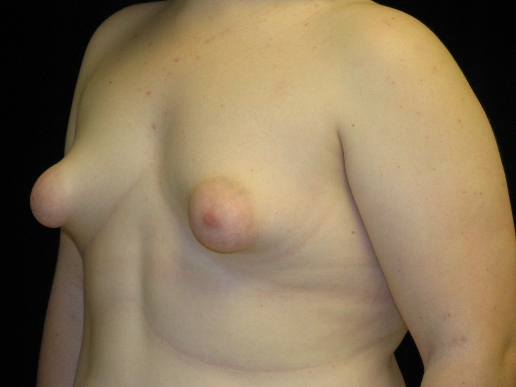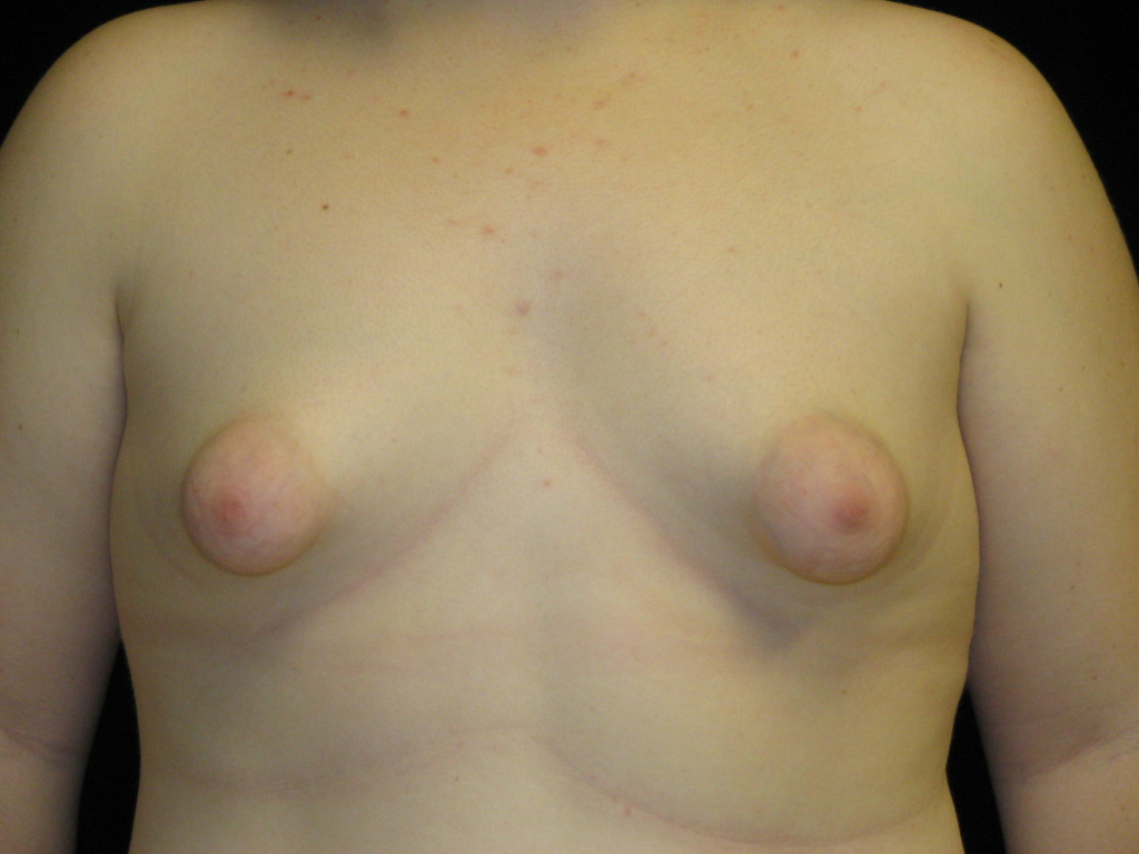 This is a 20 y.o. female 510 and 162 lbs who present with tubular breast deformity. Her goal is to have normal-looking breasts and normal areola. She also wants larger breast which is proportional to her body. She had a peri-areolar lift and 350 cc silicone breast implants. She is seen 6 months after surgery.