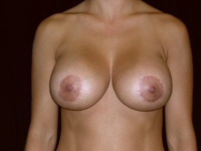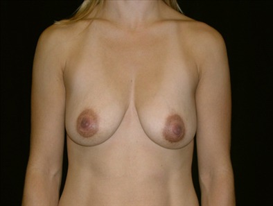 CASE DESCRIPTION: Greenbrae, California A 28-year-old resident of Greenbrae, California who presents for breast revision surgery. She had previously had a periareolar breast lift with 300cc normal saline implants. Over the ensuing three-year period she wanted to have an increase in volume of her breast implants. She had a change in her implant volume from 300cc to 400cc to achieve more fullness. Her surgery was performed at Dr. Delgados private surgical facility, Marin Cosmetic Surgery Center in Novato, Marin County, California.
