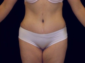 CASE DESCRIPTION: This is a 39-year-old resident of San Rafael, California who presented to the Novato, California office for evaluation for a tummy tuck. She is a mother of four children. She is 5 feet tall and weighs 112 pounds. She underwent a breast augmentation using Mentor 300 cc, normal-saline breast implants with a full tummy tuck and liposuction of her flanks. The tummy tuck and liposuction were performed two months after the breast augmentation for completing her Mommy Makeover procedures. Her surgery was performed at Marin Cosmetic Surgery Center in Marin County, California. Note the slim contour of her waist.