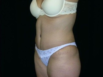 CASE DESCRIPTION: This is a 45-year-old resident of Napa County, California who presented to the Novato office in Marin County for evaluation for a tummy tuck. She is 5 feet 5 inches tall and weighs 135 pounds. She is a mother of two children. She underwent a full tummy tuck and tumescent liposuction of her flanks. Her surgery was performed at Marin Cosmetic Surgery Center in Marin County, California. Note the nice, thin, natural appearance of her midsection and the nicely proportioned belly button.