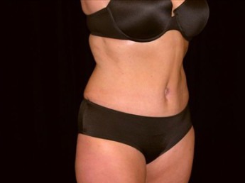CASE DESCRIPTION: This is a 50-year-old resident of San Francisco, California who presented to the San Francisco Bay Area office at Union Square for evaluation for an abdominoplasty. She is 5 feet 7 inches tall and weighs 165 pounds. She is a mother of two children. She underwent a full tummy tuck procedure with ultrasonic liposuction of 5 liters of fat from her back, flanks, upper hips and the inner thigh region. Her surgery was performed at Marin Cosmetic Surgery Center in Marin County, California. Note the more thin, tapered waistline and nice belly button.