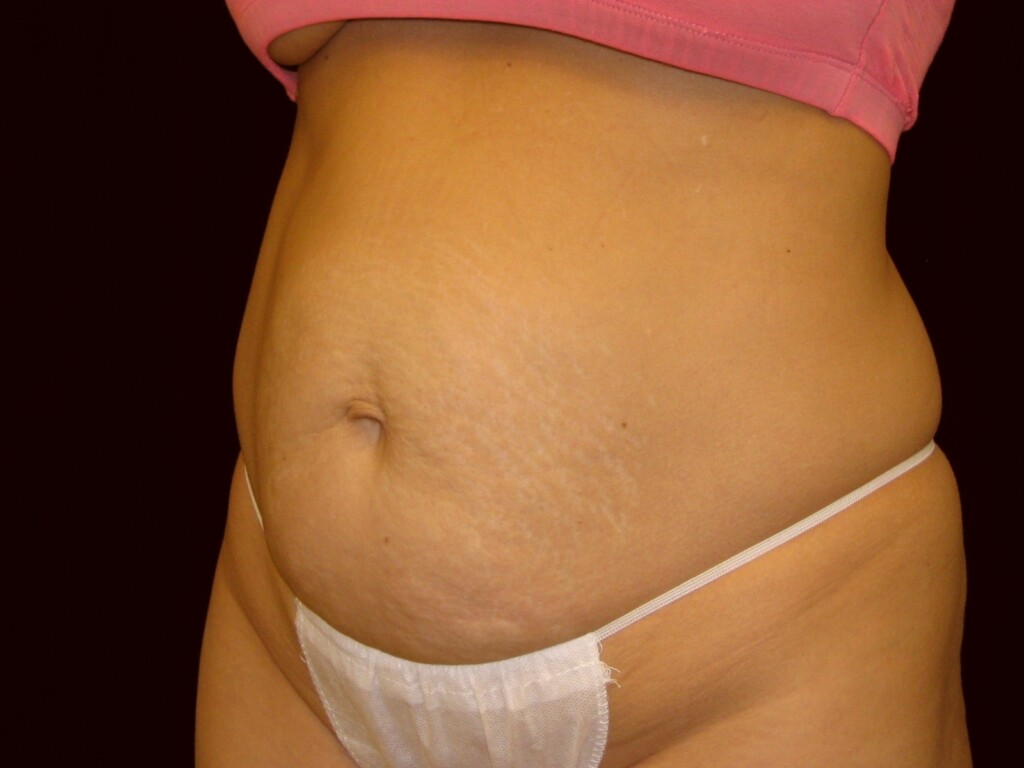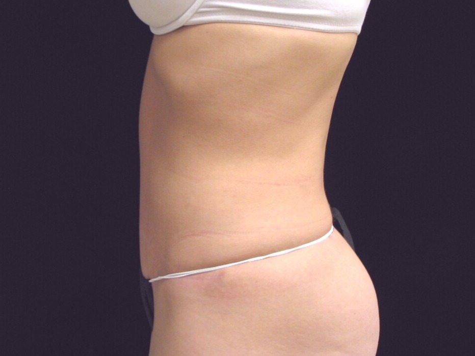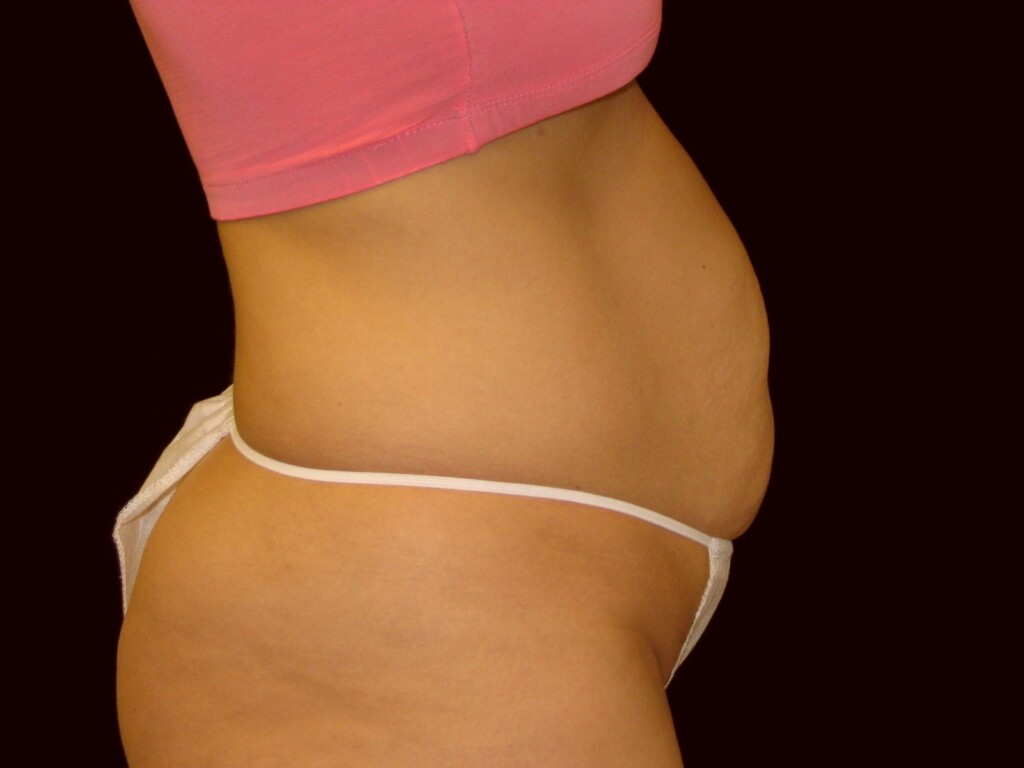 Note how the flank liposuction and tightening of the flank skin during the tummy tuck enhances the projection of the buttocks.