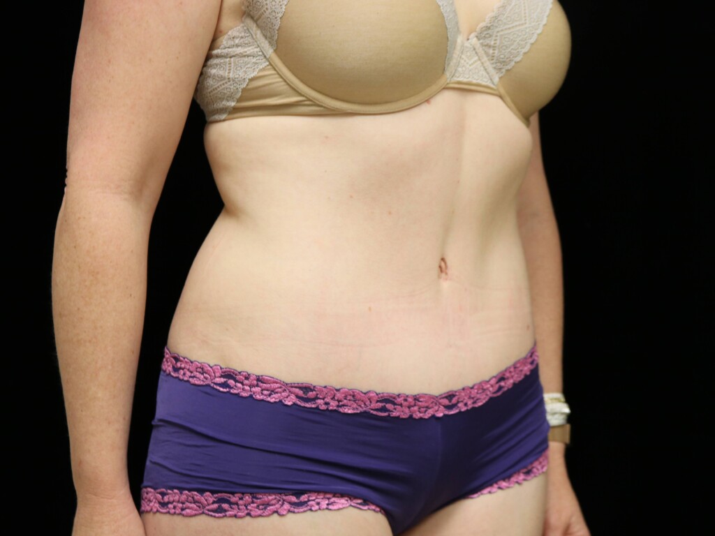 This is a 44y.o. female 57 and 131 lbs who has completed her childbearing years. She has undergone a tummy tuck with muscle repair (diastasis recti). In addition, she has had liposuction of the flanks. She is seen 9 months after surgery.